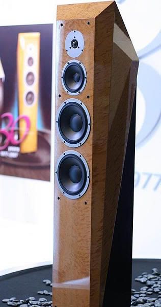 Sapphire的箔体特殊之处就在於那上宽下窄、斜边多角的造型。从正面看,好像有点头重脚轻,但贾际上它却站得非常稳。而其华贵气质则来自於漂亮的木皮与漆工,原厂提供四种木皮可供选择。