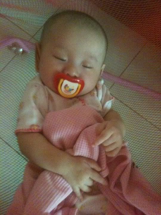 蕾宝宝好像睡惯枕头了,虽然没枕头还是一样睡,可是就是会扭来扭去的,给了她枕头就好像睡得比较安稳了。