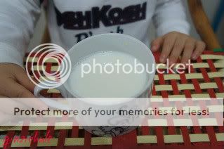 4oz配方牛奶 + 糙米糊片 + 有机乳酪 + 有机黑芝麻馒头(自制)