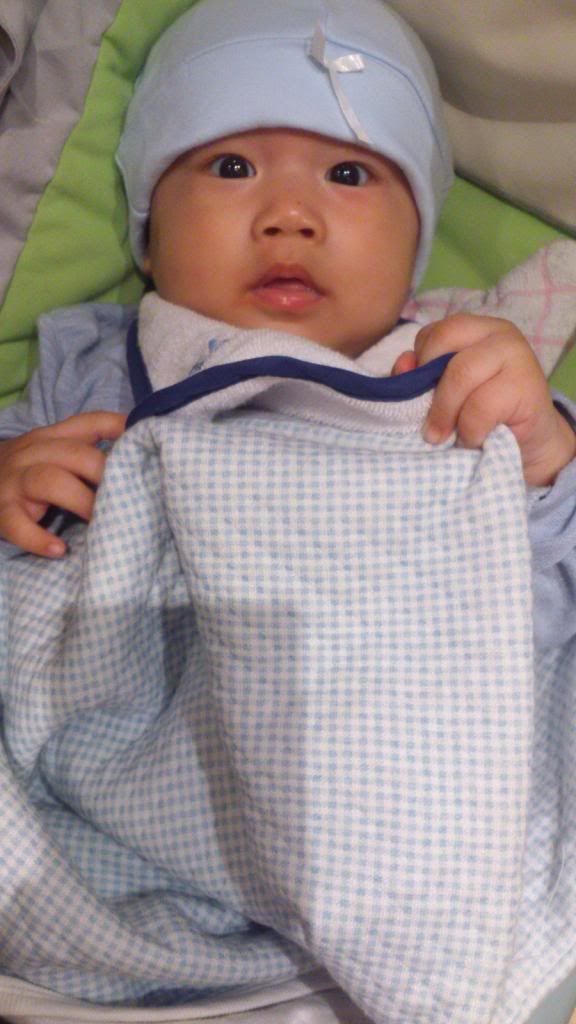 是啊!第一次放照片。很多人都说我宝宝好像六个月大。