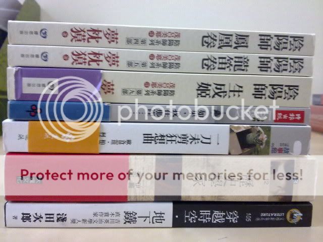 這次去書展也能算説是小有收穫,除了那本《穿越時空,地下鉄》是30%外,其它都是半價,我個人是覺得值得啦,本來是還有看到好幾本的,但都因爲只是30%而放棄了,因30%我向城邦訂就有了啊!!但《穿越時空,地下鉄》我真的是在尋找的,而且很想看,因上一本錢田次郎的《椿山課長的那七天》讓我覺得不錯,這本網上介紹說評價更勝一籌,所以就心癢癢想找來看了,看到這在書展的唯一一本就馬上丟進籃子了...