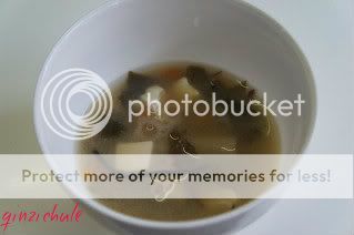 海带味增汤(胡萝卜+ 牛蒡 + 莲藕 + 羊栖菜 + 红海藻 + 苍布 + 味增)+ 鸡蛋 + 白米饭