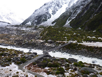 Hooker Valley Track不愧是Mount Cook最热门的健行步道,这个步道一路上的风景还真的蛮漂亮,尤其是下了雪后更是一绝,但步道的难度也因为下雨下雨后提升不少,对于部分旅客来说,Hooker Valley Track可不是一个可以简单完成的步道哦!大家可要留意哦!