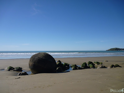 Moeraki Bolders其实就是一个个在海滩上的石头。当然,如果这些石头只是普普通通的石头也不可能会成为一个旅游景点。这些石头的形状有一点特别,它们都特别的圆。。。对,Moeraki Boulders就是一颗颗圆圆的石头。这些石头的形成都是大自然的杰作,完全不是人为的打磨而成的哦!!!