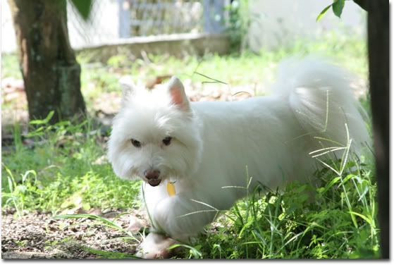 你的比比真是Cute到让人忍不住要大大力觅它的脸颖,它是纯种的westie white terrier吗?