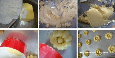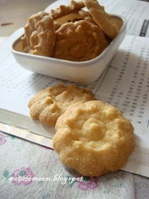 材料:牛油100g。糖霜/糖粉(icing sugar) 25g。面粉75g。粟粉25g