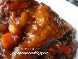 4。热锅。1匙油烧热。倒入汁料煮至浓,加入炸好的肉片大火炒匀~完成~ |