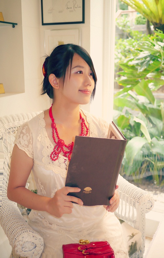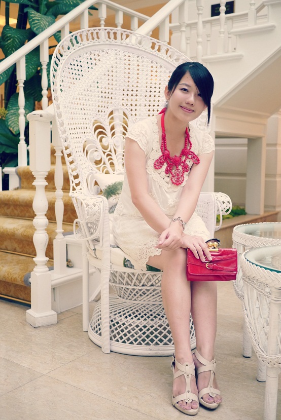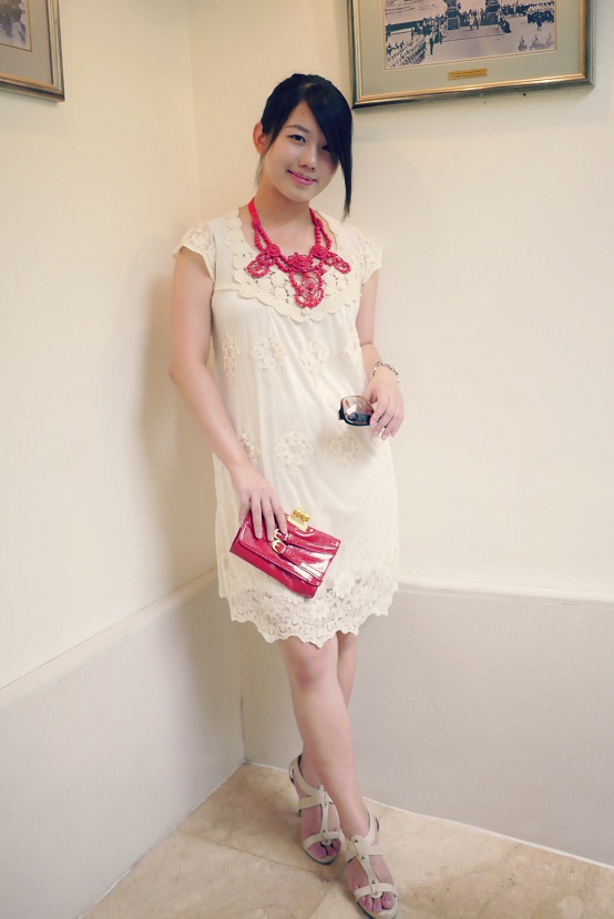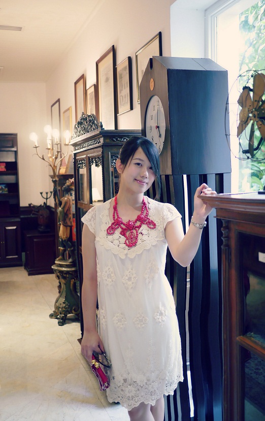 比比的 时尚日记 ❤ 小露性感白色小洋装 + 粉彩水晶质感项链