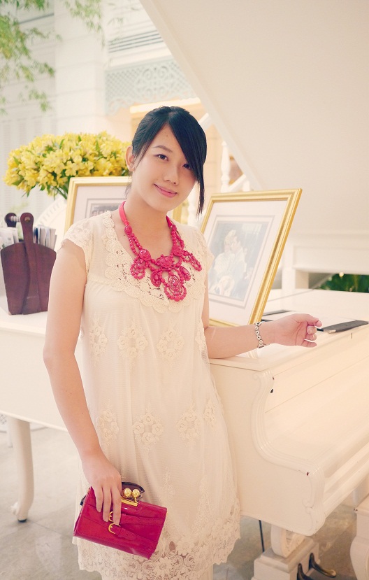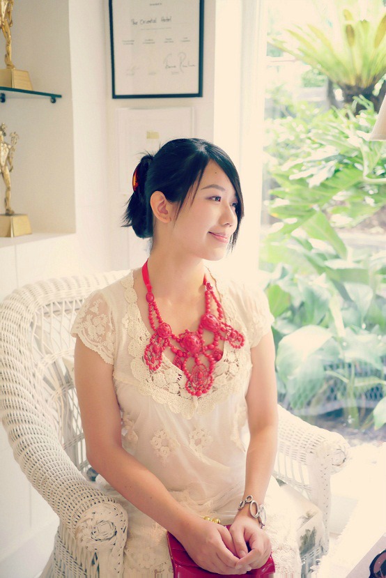 谢谢,虽然胸口间的蕾丝比较复杂,但就因整件蕾丝裙是素色的,我觉得搭配上复杂些颜色亮眼一些的首饰可以衬托出整体的视觉效果。
