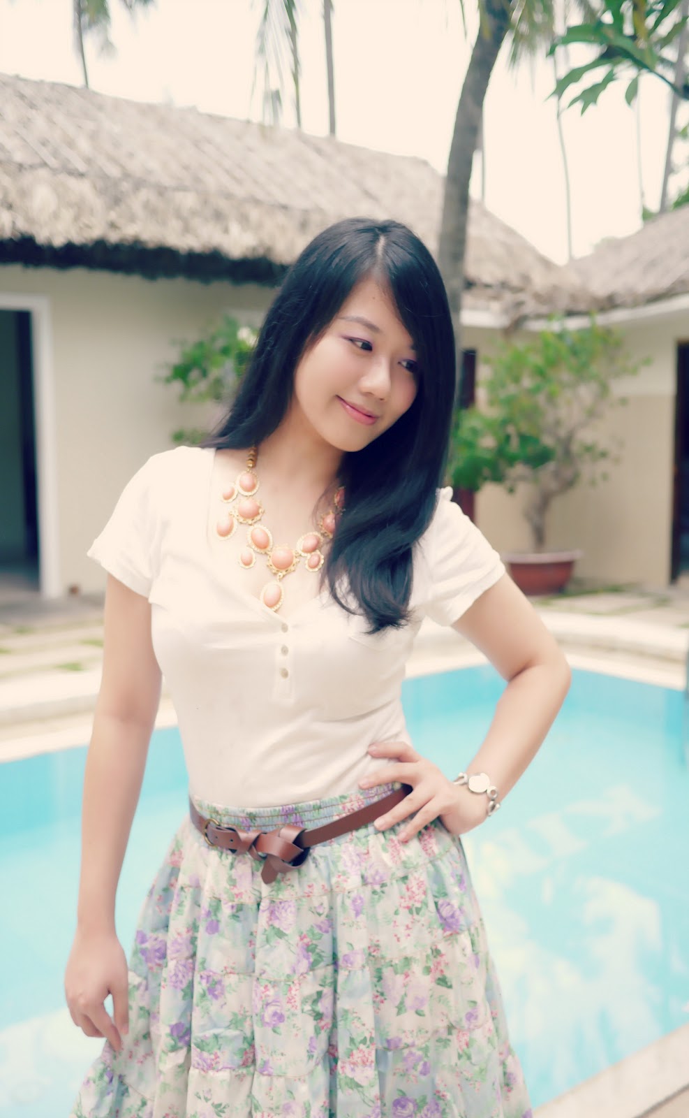比比的 时尚日记 ❤ 小露性感白色小洋装 + 粉彩水晶质感项链