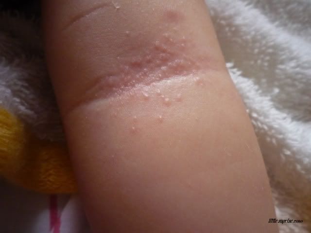蕾宝宝的红点也是好了许多,但是颈项深处还是有两条红红的痕。。。有点破皮。