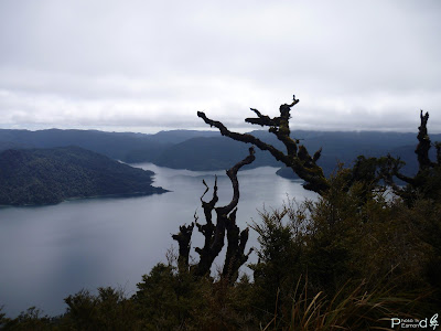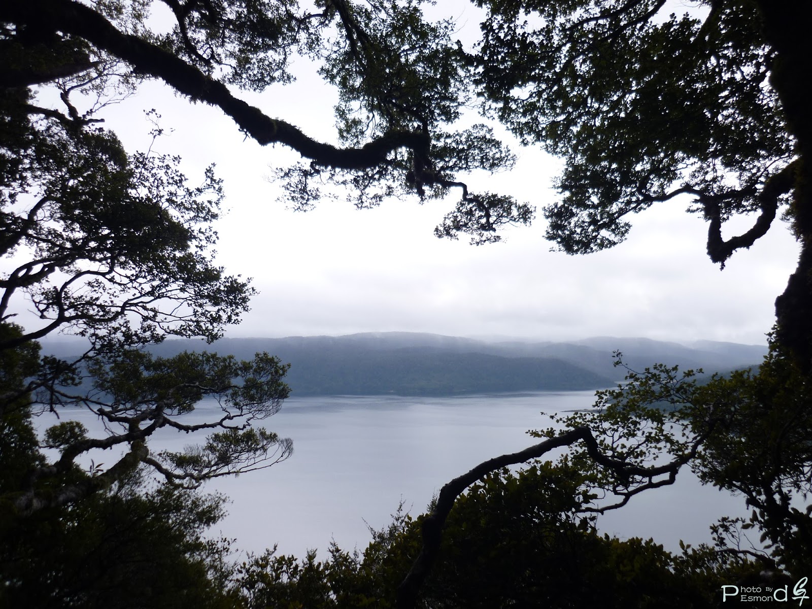 今天这一段步道主要是上山路,基本上都是沿着树林上山,然后沿途都可以从山上望去旁边这个大大的湖--Lake Waikaremoana。一路上山时,天空还是维持着乌云满天,我只希望不要下起倾盆大雨就好了。。。