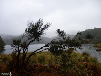 今天的天气不是太好,一眼望去都是乌云满天,偶尔走着走着还会下起纽西兰式的绵绵细雨。。。何为纽西兰式的绵绵细雨?这里的细雨真的是很细,很多时候我都没发现原来已经下雨了,都是看到外套湿了才发现。。。一路上都是穿过树林前进,偶尔还会经过湖边哦!