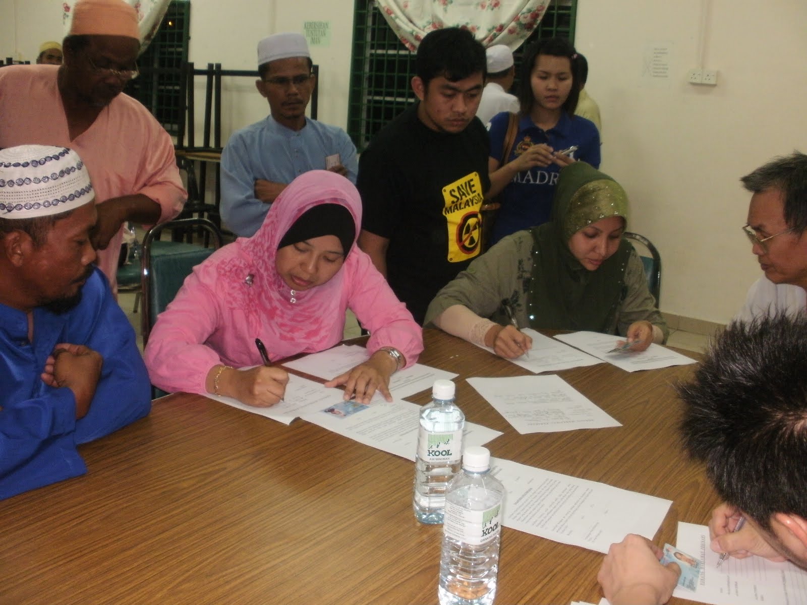 [Selepas majlis dialog, pihak peguam terbabit telah mengedarkan borang untuk diisi oleh rakyat terutamanya di sekitar kawasan yang berisiko besar hadapi ancaman radioaktif yang bakal dikeluarkan oleh kilang tersebut. Borang yang diedarkan telah habis sekelip mata dan terpaksa dicetak semula oleh pihak berkenaan. Sesungguhnya, rakyat tetap mahu memastikan Lynas dinyah keluar dari bumi Kuantan buat selama-lamanya. Dalam pada itu, kita juga terkejut apabila pihak peguam terbabit melaporkan mereka kecewa dengan tindakan media arus perdana terutamanya yang berbahasa Melayu gara-gara tidak menyiarkan kenyataan media yang dibuat oleh pihaknya ketika mesyuarat khas baru-baru ini. Satu resolusi telah dibentuk untuk membantu rakyat dalam menangani isu tersebut. Difahamkan hanya akhbar Sinar Harian, akhbar berbahasa Cina dan Inggeris sahaja yang menyiarkan kenyataan media itu. Turut hadir ialah Ustaz Nasron (YDP PAS Indera Mahkota), Andansura (Timbalan Ketua PAS Indera Mahkota), Ustaz Suhaimi (Naib Ketua PAS Indera Mahkota) dan beberapa lagi yang lain]. |