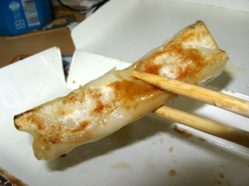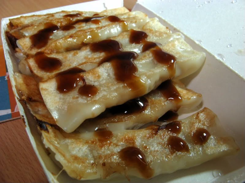 那锅贴长型的哦,很像我们的POPIAH~ |