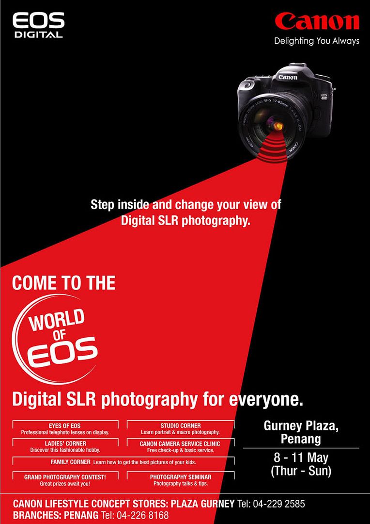 Canon Malaysia將在五月份主辦个”World of EOS” carnival 于槟城Gurney Plaza.