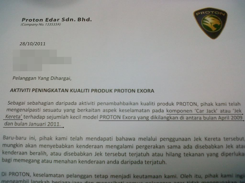 Proton 寄信来了,是要换car jack 的。。。各位大大去问问看SC。 我换了他才寄来。。