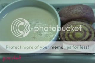 5oz核桃花生米豆浆 + 有机双色番薯馒头(自制)