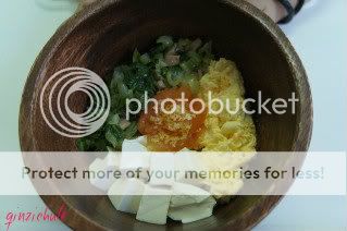 番茄豆腐鸡蛋汤 + 冷压橄榄油拌香菇青江菜 + 糙米 + 能量三宝(大豆卵磷脂、小麦胚芽、酵母薄片)