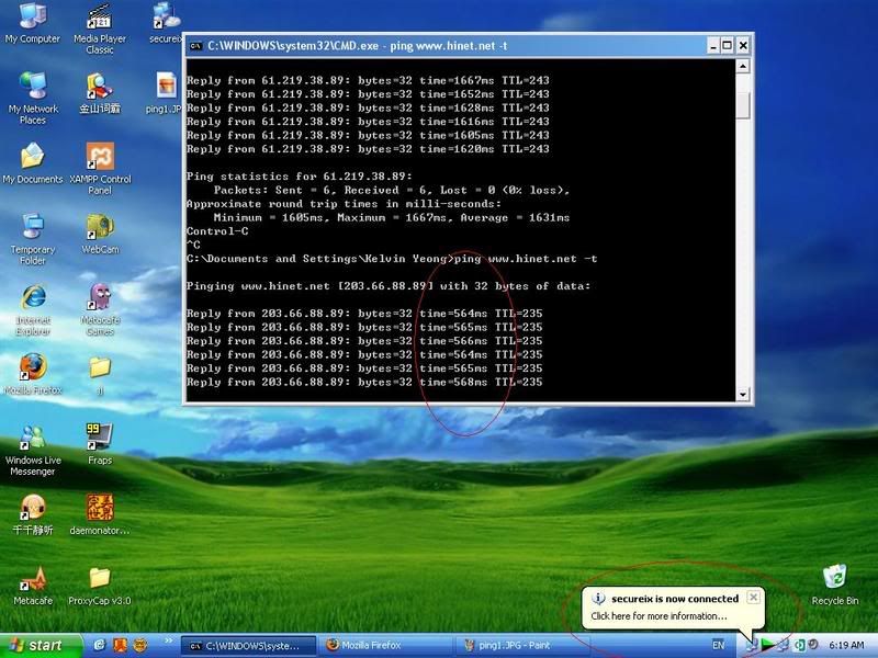 昨天用了免費的secureix vpn,我的ping竟然在1600++跌到500++,因為secureix是免費,所以有bandwidth limit!如果用了付費的vpn如bolehvpn一天給rm1就可以擁有了哦,但是這個我會自己親身體驗在告訴大家.所以大家先不要緊張去自己付費試試看哦,萬一不行我就死了.