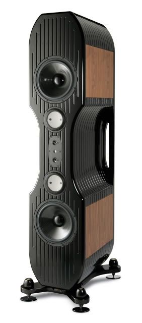 中音单体是七寸的陶瓷振膜中音,与高音单体相同都来自Thiel and Partners公司的Accuton系列,这系列产品大概也是当今能够用钱买到最佳的单体。Kharma的喇列单体,也算是这方面的先驱者之一。低音单体则是十三寸的Eton Nomex—Kevlar振膜单体,这种陶瓷中音与Eton低音单体的搭配是美国Hi End喇叭名厂Avalon的最爱之一,而Grand Exquisite每声道更使用两个中音与两个低音单体作上下对称的排列,可说完全模拟点音源的工作方式,也难怪这对喇叭高度要超过两百公分了。