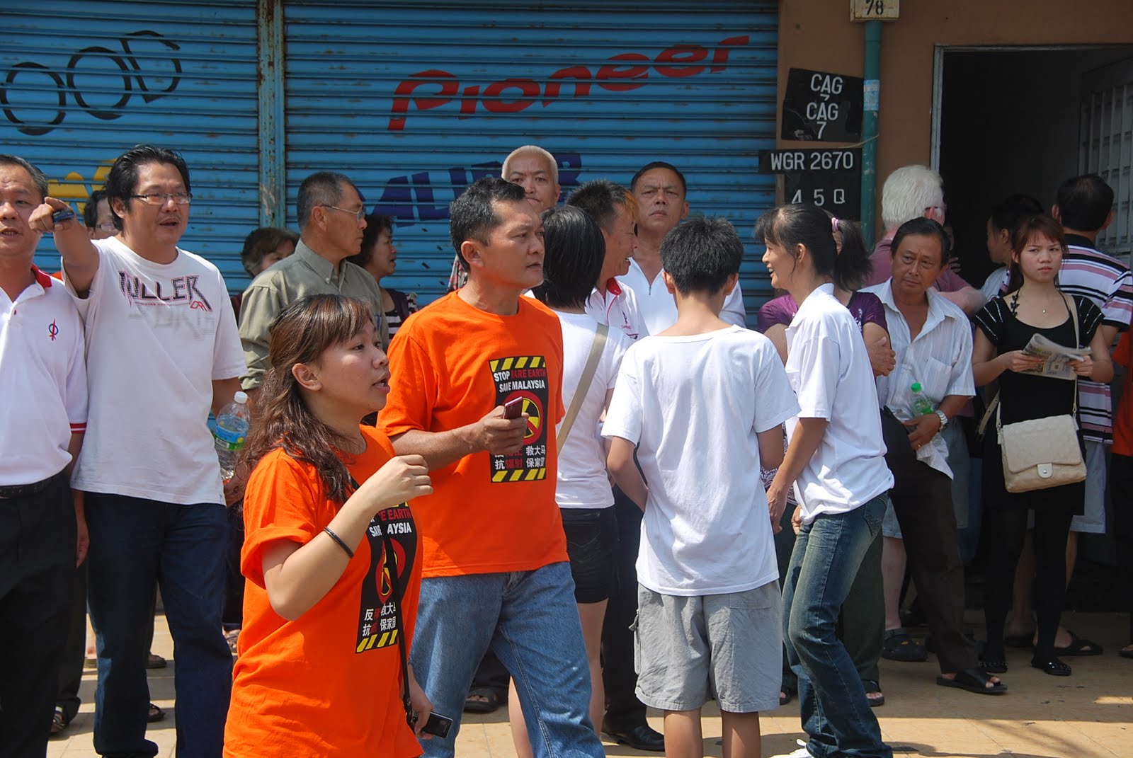 Laungan "Hidup Rakyat, Bantah Lynas" bergema dan ini menimbulkan sedikit ketengangan bila pihak polis mula mahu bertindak agreasif selepas ketibaan Ketua Polis Daerah Kuantan, OCPD Jasmani Yusoff. Beliau yang agak berlembut ketika himpunan 1,000 Ibu mengandung Bantah Rare Earth sempena hari ibu di Teluk Chempedak baru-baru ini tiba-tiba bersikap keras dengan mengarahkan ucapan dihentikan dan perhimpunan tersebut dibatalkan kerana tidak mempunyai permit. Kelihatan YB Azan berunding dan mohon kerjasama polis untuk memberi ruang mereka berhimpun secara aman kerana ia tidak perlu permit susualan diadakan di premis sendiri. Namun, OCPD bertegas mahu perhimpunan dihentikan atau polis bertindak terhadap mereka. Akhirnya himpunan dihentikan dan mereka memohon pihak polis untuk mengambil gambar di tempat letak kerata pejabat DAP. Kebenaran diberikan untuk seketika dan kemudia polis mengarahkan semua bersurai. OCPD sendiri gunakan pembesar suara mendesak orang ramai bersurai.