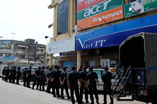 [size=85%]Benteng, polis sanggup berjemur ditengah panas untuk menghalang rakyat