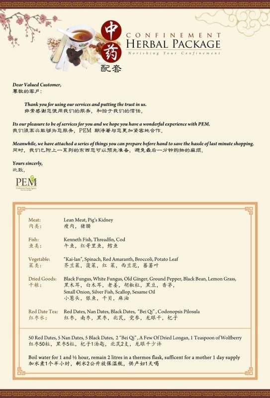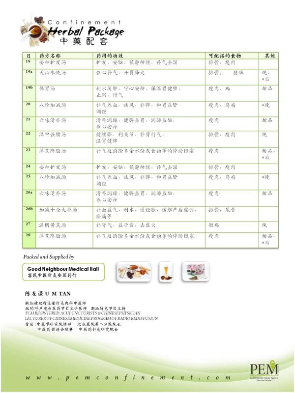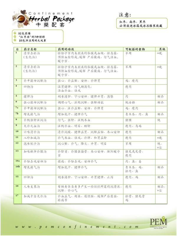 我会坐月子但不是很传统的那种 我还是会每天洗澡 不过会用药草和热水 洗好立刻抹干吹干 吃的方面已经和陪月经纪公司拿了药材配套 待会我把配套放上来给大家参考 |
