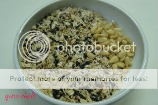 5oz松子五谷米糊(有机糙米、红米、黑米、小米、荞麦、燕麦片) + 香菇白萝卜鲜肉馄饨(自制)