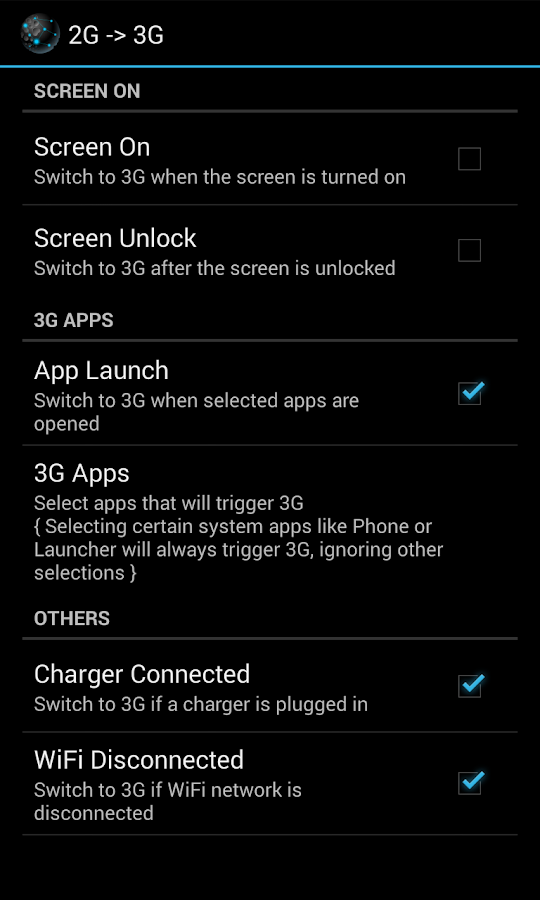 screen on幾秒後自動進入3g mode
