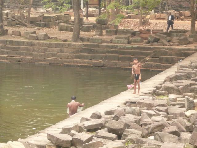 Baphuon前面是一条长长的桥。。旁边还有水池。