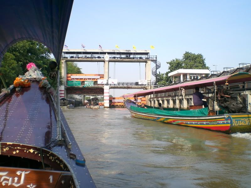 舵手说: 由于在闸门前的时间拖延得太久了, 所以不够时间上岸去参观Wat Arun了...