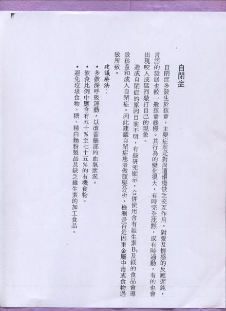 孩子很小时一切都很 NORMAL。 是在两岁半左右时才发觉他的行为有点不 NORMAL。 后来我 COUSIN 看了一个 TV PROGRAM 就跟我说了关于自闭儿的 SYMPTOMS,我们才决定带他看心理医生。。。。