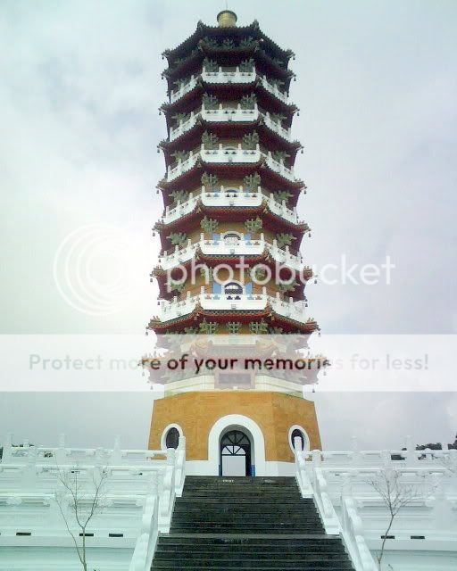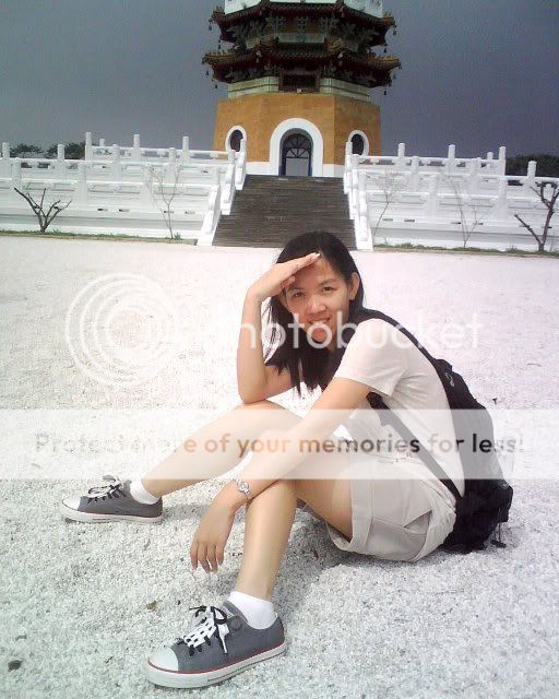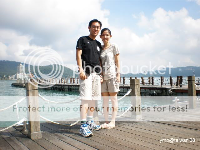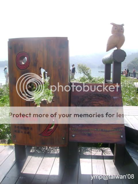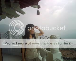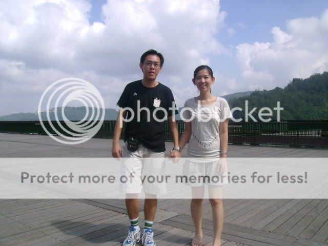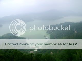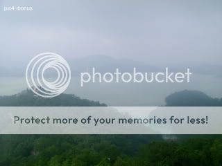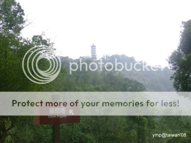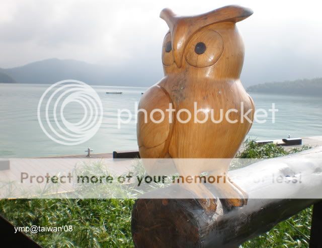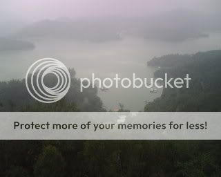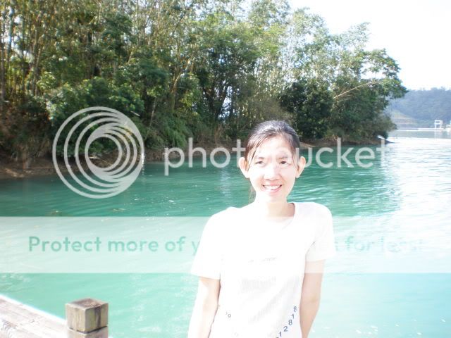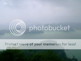 慈恩塔共有九层高,哈哈,一路上去还有幼幼的蜘蛛丝粘在我的手臂呢!到了顶层我立刻冲出去看期待已久的日月潭美景。