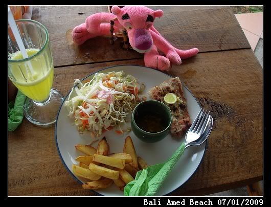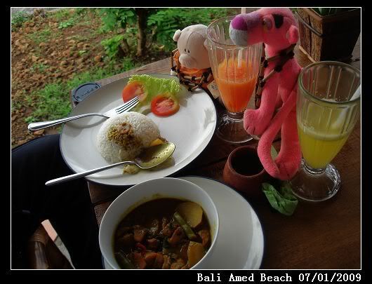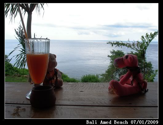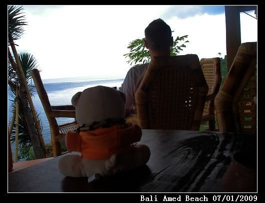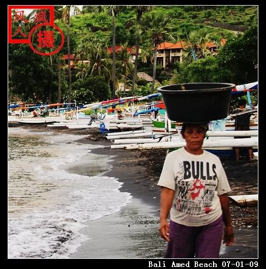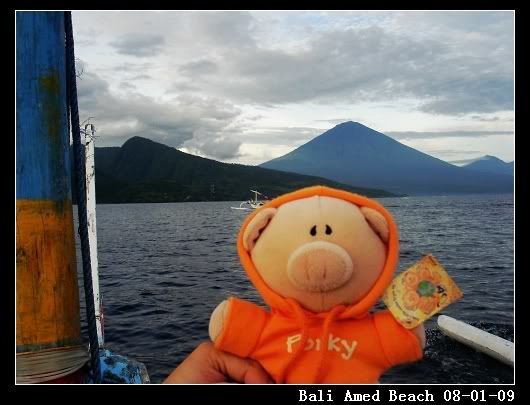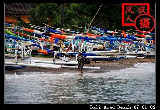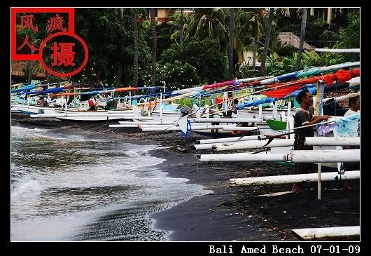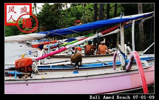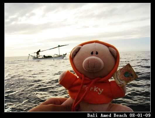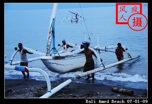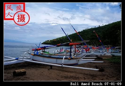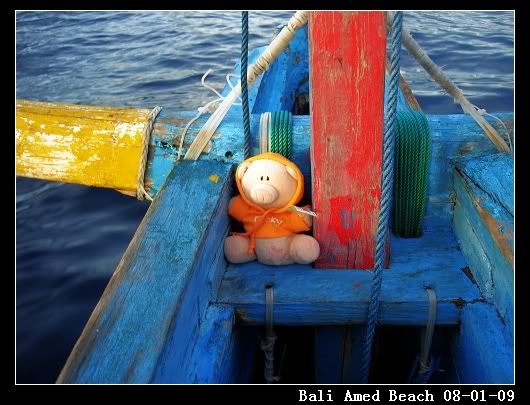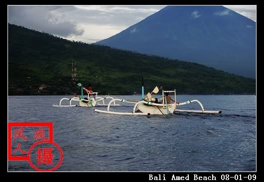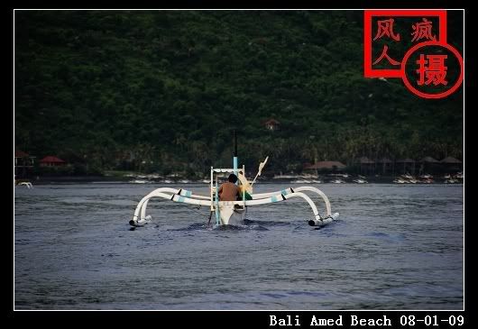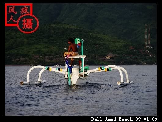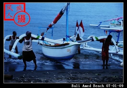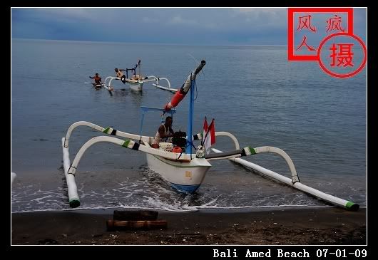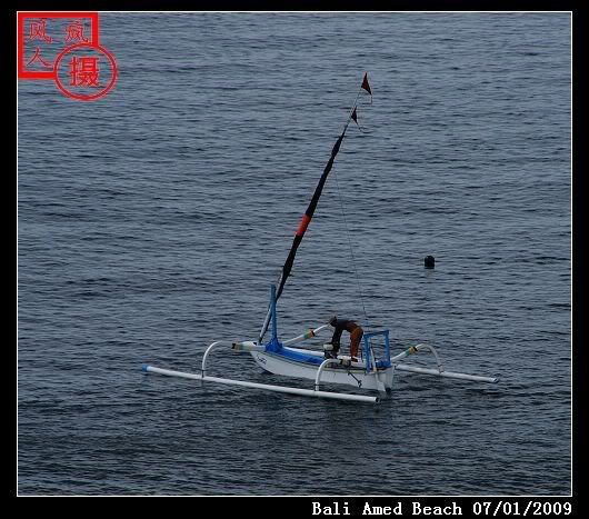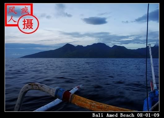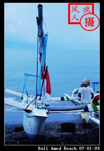 因为昨晚很早就入睡了,清晨5点多就醒来,梳洗准备好没多久,ketut已经来敲门,他带领我们到海边,一艘八爪鱼船已经在等着我们。我们还以为ketut会和我们一起出海,ketut却告诉我们昨晚不是听到敲锣的音乐声吗?他的祖父去世了,他要处理家里的丧事,所以无法和我们一起出海。