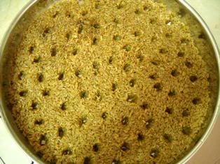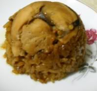 2. 鸡肉和香菇分别用胡椒粉,蚝油,酱油,盐,黑酱油,麻油少许腌制至隔夜。(我浸3~4小时) 鸡肉我用胡椒粉,蚝油,酱油,盐,黑酱油,绍兴酒腌制3-4小时,到要做糯米鸡时才放麻油腌肉(因为看美食节目时听说油会阻挡肉吸收酱料,所以我最后才下) 3. 之后蒸45分钟 (要用手指戳一个个洞,据说就会粒粒分明) 在还没有蒸糯米前,爆香葱头,然后加入糯米炒,到入调味料拌匀,然后才蒸