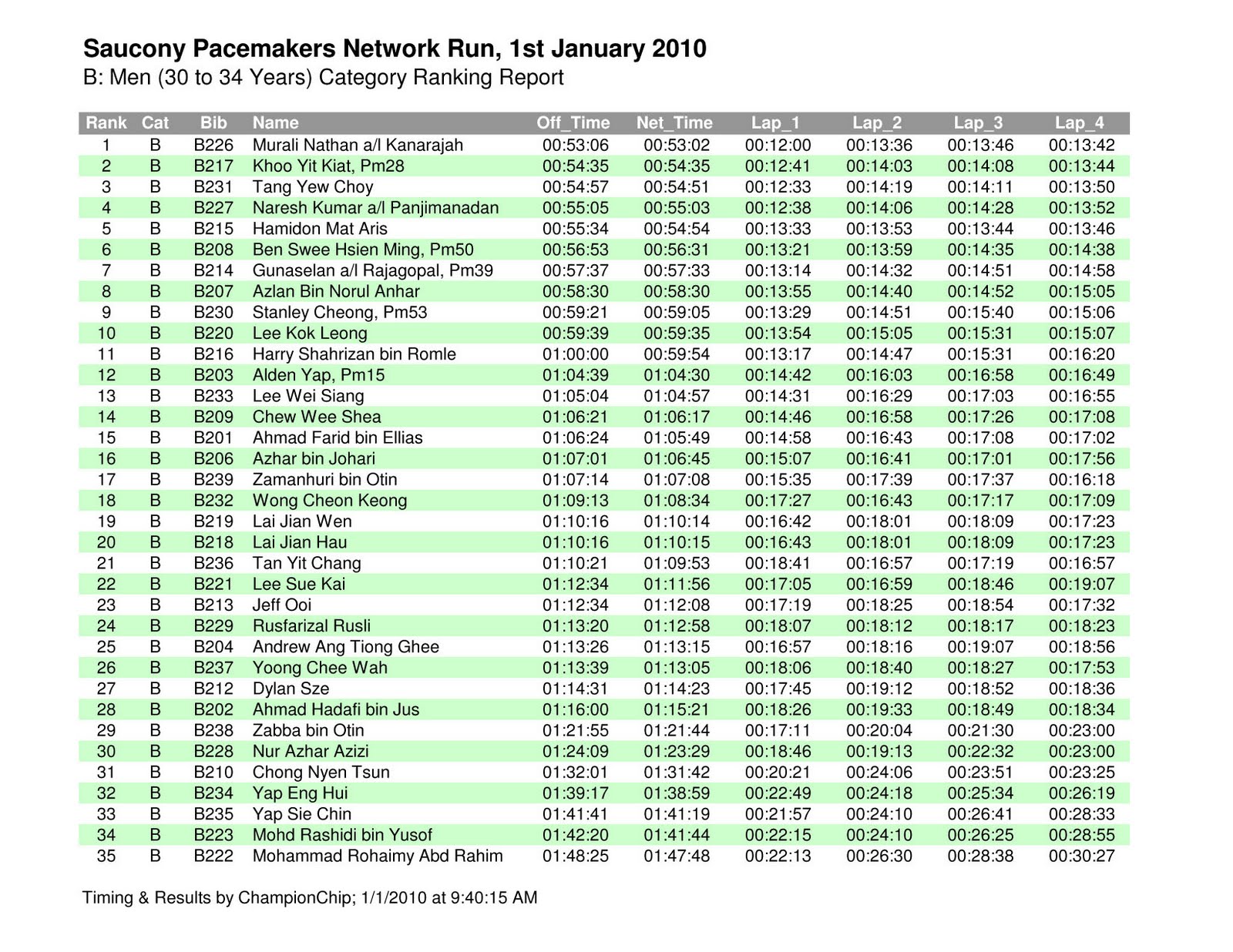 Another thing is, I noticed from the latest statistic file, my position is behind Lai Jian Wen and Jian Hau in the "Position by off time". In actual fact, I crossed the line before them although the gun time was the same. Not sure this was because of worksheet sorting issue or other error. Paiseh, not make big difference here, but I pia so hard at the end to sayur them. Maybe it could determine a trophy position next time. hehe...