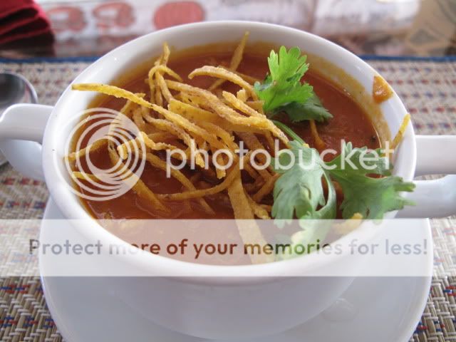 就随便在Soup & Dessert之间犹豫, 然后点了Viva Tortilla Soup, 没看清楚Soup里面有什么成份, 结果出来的是番茄汤..... 我最不喜欢番茄了, 又是浓缩的..... 结果还是要硬硬的喝完, $$$.....