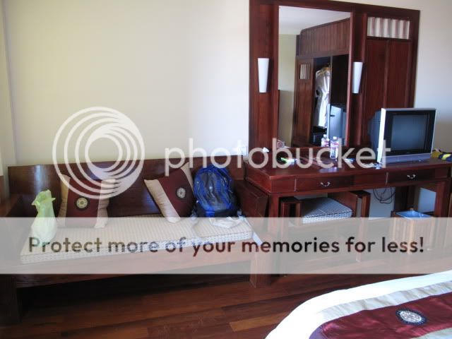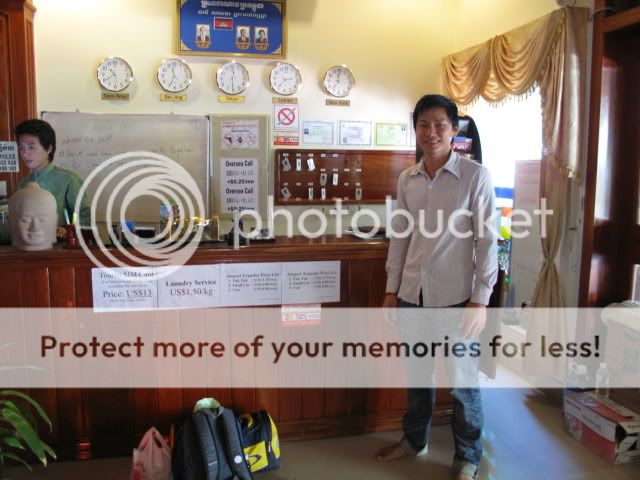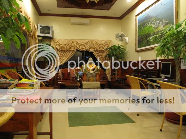 在Motherhome GH用Internet时顺便拍一下大厅, 右边的画就是我一直想去可是去不到的Preah Vihear.....
