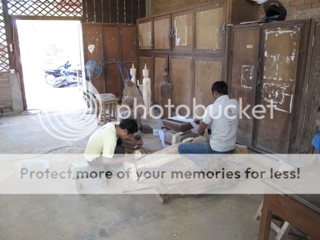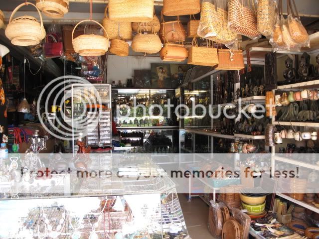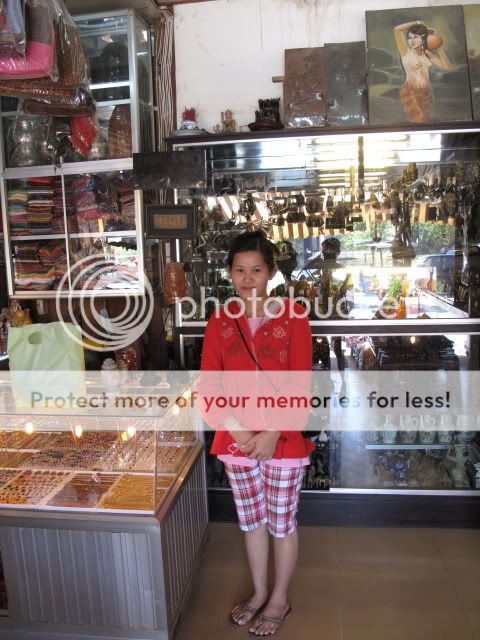而结果是看到一个个子小小带着口罩的女孩, 刚好又有我要的东西 (虽然其他店也有 ), 就以USD11买了小型Angkor Wat, Bayon笑脸雕刻 & Angkor装饰布(这买来做什么也不知道, 应该买桌布的).....