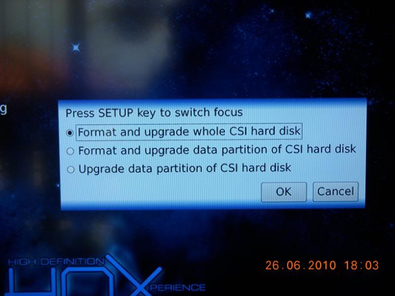 再来升级CSI - 想用BD1来当下载机(本来要用HDX1000但是都还没回家。。。),发现BD1好像可以用固件来格式化硬碟了,但是因为我已经把硬碟格式化了所以就没有选这个选项-只是用升级CSI而已-