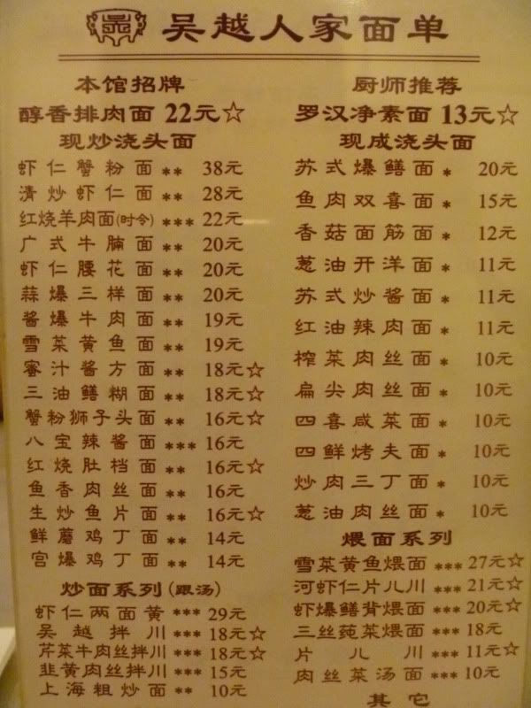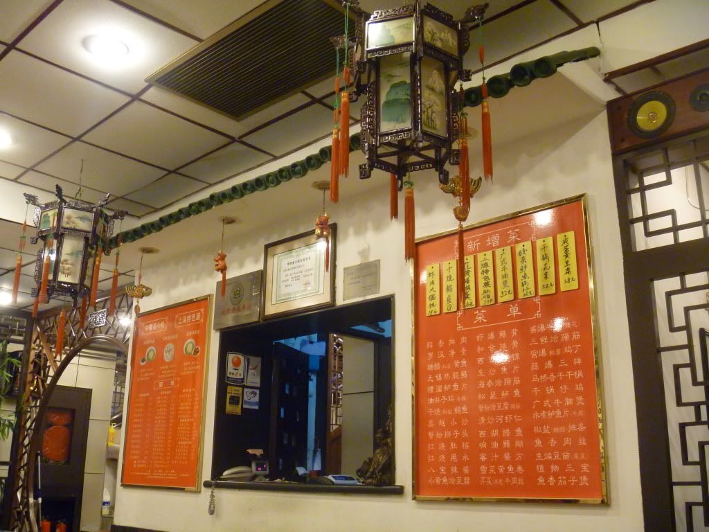 结果从四点睡到七点。。。。看起来好像很浪费时间,难得来应该走走,却睡觉。我们可不管了,睡了一觉舒服多了!过后就吃我们的晚餐。选了附近的吴越人家,不过可能是八点了,招牌面卖完了!!只好叫别的了。店面其实不算大,有中式的设计! |