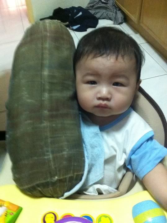 我的宝宝 到现在都还没出牙。。8个月了。。aiyo。。每次我问他,你的牙齿呢?不见了。 |