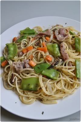 呵呵,我的煮法是 “只要是意大利面,一定要有洋葱” 配料:洋葱(切丝/切丁),蒜头(切丁),培根(切条状),角豆(切片),萝卜(切丁)