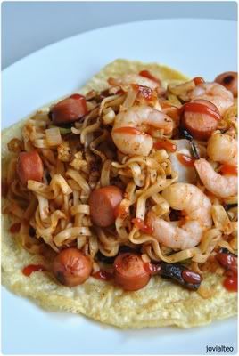 1. 面放入滚水中 (加少许盐与油),煮至你喜欢的软度 (不要太软,因为你还要去炒)