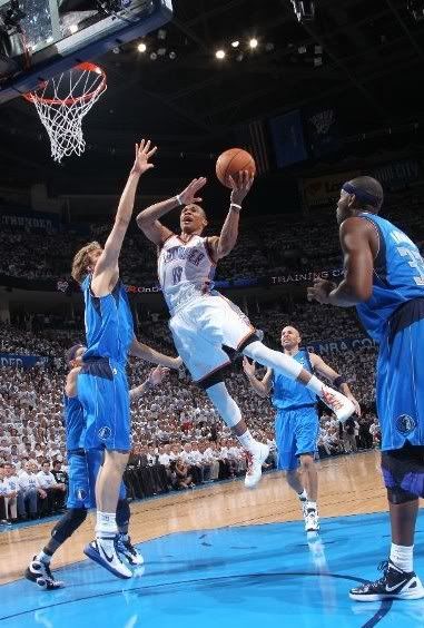 和擅于传球组织带动全队的基德相比,年轻气盛的威斯布鲁克更喜欢进攻。比赛开场后威少就连续两次投篮但都没能命中。基德的突破上篮虽然也被干扰未能得分,但他却率先助攻诺维茨基跳投得手。随后两大控卫之间的传球较量掀起了一个小高潮:威少妙传佩金斯篮下打三分,基德马上助攻韦斯特三分远投中的。