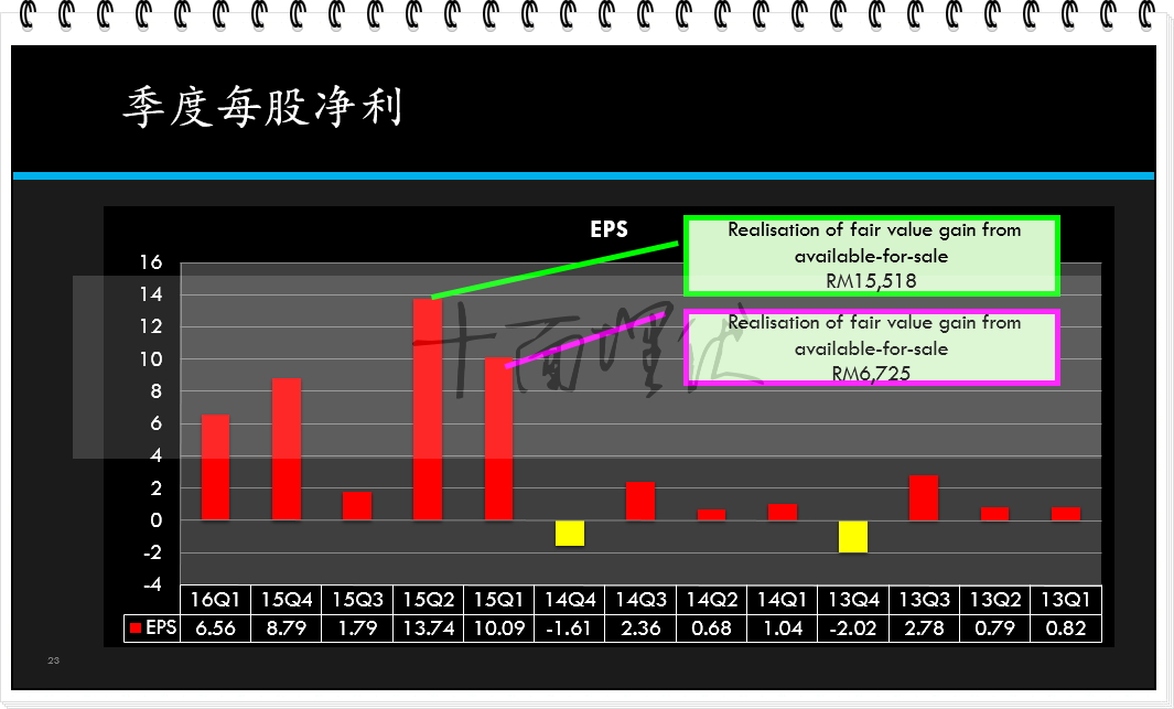 截至2016年3月31日为止第3季,该公司净利为419万4000令吉(每股净利为2.84仙),前期净利为134万2000令吉(每股净利为1.79仙)。