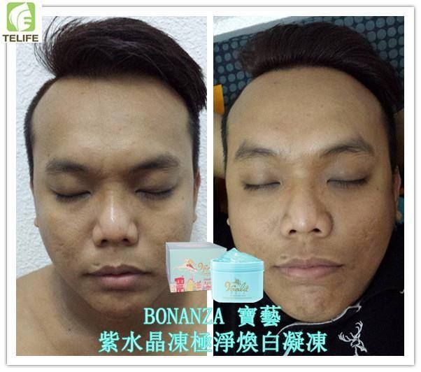 Bonanza敷了感觉冰凉舒服,虽然敷的时候弄到鼻孔好不舒服因为是我太太帮我敷的还被她嘲笑流鼻涕哈哈!洗了后真的有白了点!而且皮肤也感觉清爽干净^^