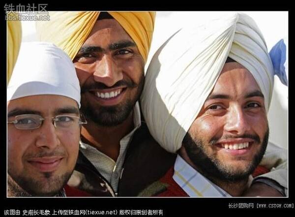在印度,身材最高大的是锡克人,公认长相最美丽的也是锡克人。高高的鼻梁和白皙的皮肤让很多锡克少女在选美比赛中脱颖而出,而包头、蓄须,再加上高大魁梧的身材,则是锡克族男子的典型标志。