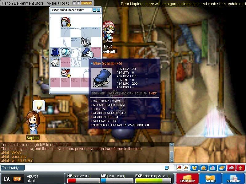 我先丢60%的,最后再丢两张10% ><~但只有一次这么好运而已,我每次scroll shoe for jump/ dex..FAIlzzzz |